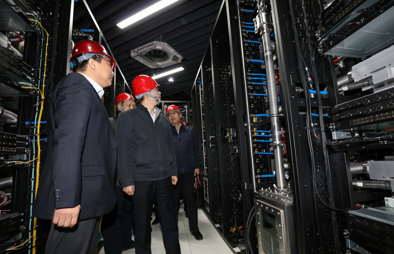侯建国副书记在项目负责人的陪同下参观了超级计算中心的机房和高低压配电室,认真听取了中科曙光超算项目建设的进展情况,详细了解了项目在全面推进施工建设过程中安全、环保、质量管控等各方面的投入、措施及安排。侯建国副书记对曙光超算中心的建设进展表示满意,对玩加电竞·(中国)官方网站表示肯定。最后,侯书记强调,曙光超级计算中心建成后将成为中国科学院战略性先导科技专项(C类)“国产安全可控先进计算系统研制”中心,是国家重点项目,具有十分重要的政治意义,在项目即将竣工的最后关键时期,希望参建各方继续保持高度紧张的工作状态,同心协力、刻苦奋战,确保曙光超算项目圆满完成。