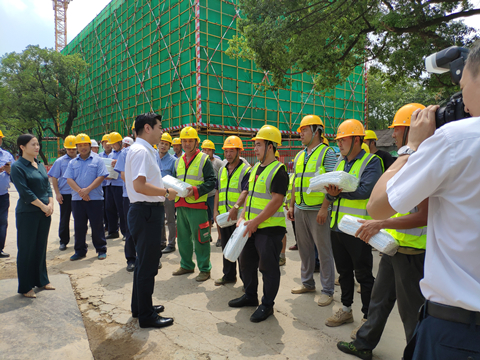 8月21日上午十一点,接近中午烈日炎炎,湘江集团党委书记、董事长张利刚一行来到玩加电竞·(中国)官方网站承建的长沙科技创意园项目,现场看望慰问高温天气下依然坚守战斗在岗位上的广大建设者,为大家送来了冰箱、电风扇、凉茶、藿香正气水、夏桑菊、西瓜等防暑降温用品。
