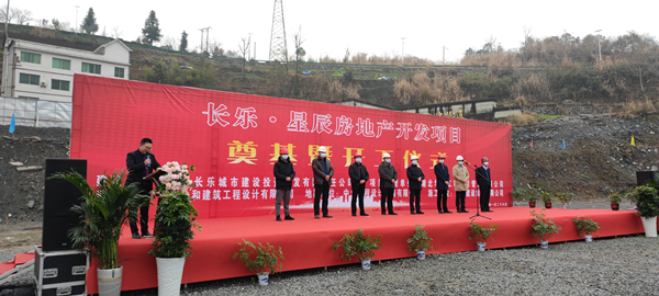 2021年1月26日上午,由玩加电竞·(中国)官方网站承建的长乐▪星辰住宅项目奠基暨开工仪式在项目现场热烈举行。湖北省宜昌市五峰土家族自治县住房和城乡建设局副局长陈白华、县质量安全监督站站长邓简涛、玩加电竞·(中国)官方网站五峰长乐▪星辰项目经理王国云,项目参建各方及新闻媒体共40余人出席。宜昌市长乐城市建设投资开发有限责任公司总经理刘鹏主持。