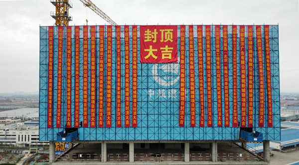 2022年1月25日,集团公司承建的四川成都新城驿中心项目(一标段),在施工现场举行结构封顶仪式。现场装饰一新,呈现出一派喜庆祥和的氛围。项目建设、监理单位代表,项目部相关人员参加仪式。